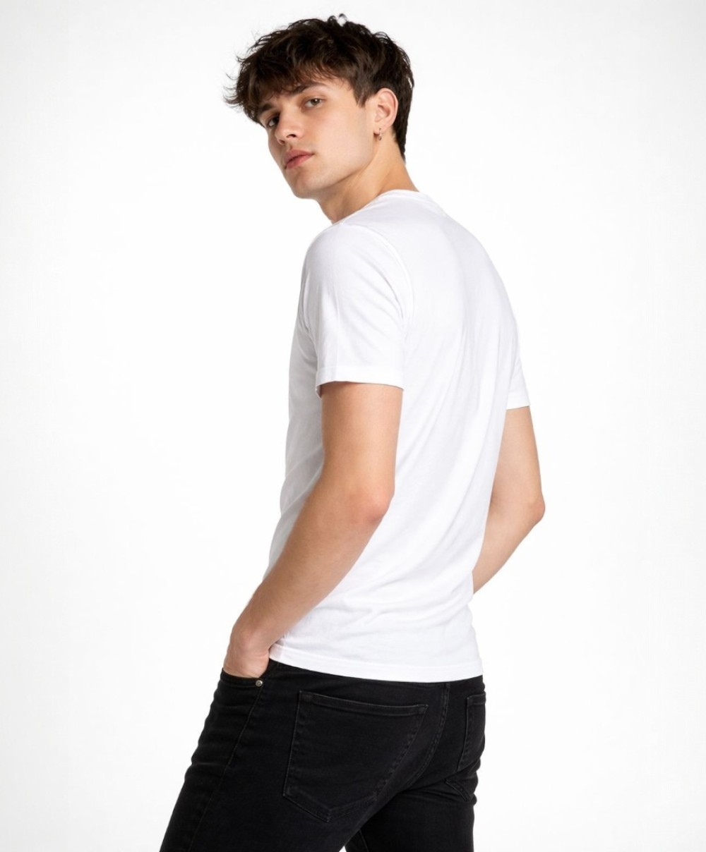 ERKEK BASKILI BEYAZ SLİM FİT PAMUK V YAKA TSHIRT